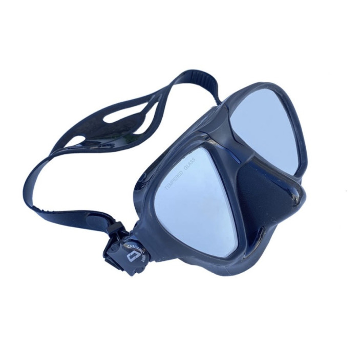 - Libertà di movimento: Il giunto cardanico permette al cinghiolo di ruotare in ogni direzione, adattandosi naturalmente alla testa dell'apneista e garantendo una tenuta perfetta senza dover stringere eccessivamente.