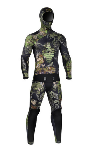 La muta MEROU CAMO di H Dessault 5 mm eleva gli standard della pesca subacquea combinando prestazioni termiche eccellenti e un'impeccabile attenzione alla sicurezza ambientale e dell'utilizzatore.