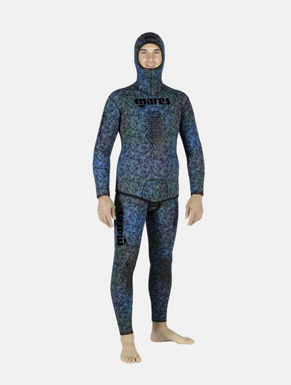 Mimetismo e Scienza: L'indaco è il colore base scelto per il nuovo e innovativo motivo poligonale mimetico. Questa scelta non è casuale: poiché i pesci sono in grado di vedere i raggi UV, l'indaco è stato selezionato per la sua capacità di essere il colore meno riflettente e più assorbente dei raggi UV sott'acqua. Questo design mimetico rende il profilo del pescatore praticamente invisibile, migliorando l'efficacia della pesca in apnea.