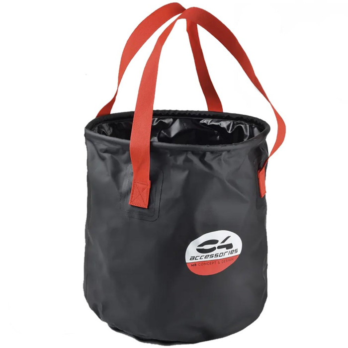 La C4 Black Bucket Bag è realizzata in PVC Tarpaulin (telone in PVC) ad alta densità, un materiale noto per la sua eccezionale resistenza allo strappo, all'abrasione e per la sua totale impermeabilità.